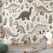 Hand-Painted Dinosaur Wallpaper Mural | Prehistoric Adventure Kids Room Decor | Retro Playful Nursery Wall