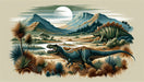 Visual highlights: The dinosaur morphology is delicate and vivid, and the hidden scenes are rich in layers (mountains, vegetation, lakes). The retro color tone weakens the sharpness, combining childlike charm and artistic texture;