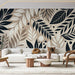 Retro Nature Leaf Mural Wallpaper - Black on Beige