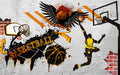 Featuring dynamic basketball graphics in a sophisticated black and orange color scheme, this wallpaper brings contemporary industrial edge to any room. The artistic graffiti elements and simulated texture create depth, turning plain walls into captivating basketball-inspired art.