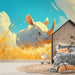 Whimsical Rhino Grassland Wallpaper Mural | Playful & Healing Kids Room Decor