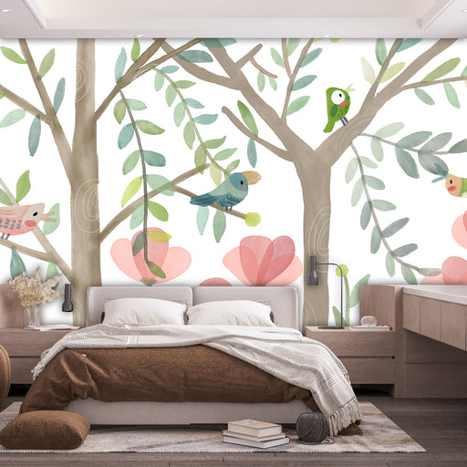 Afficher tous les détailsThis wallpaper brings' Forest Fairy Tale Dream 'home 🌳🐦 Watercolor birds and forest plant elements, pasted in the children's room, instantly trans...