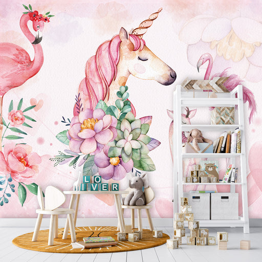Afficher tous les détailsThis wallpaper brings' Fairy Tale Girl Dream 'home 🦄🌸 Watercolor unicorn and flamingo elements, applied to the living room, instantly transforming...