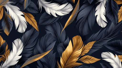 Afficher tous les détailsThis wallpaper has a deep navy blue background, creating a mysterious and noble atmosphere. In the picture, golden and blue feathers are intertwine...