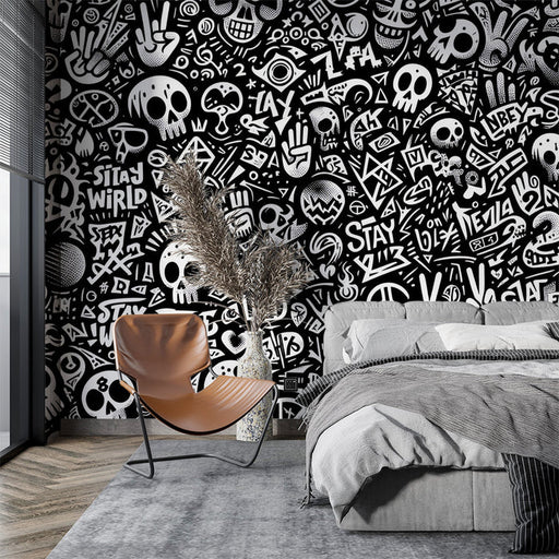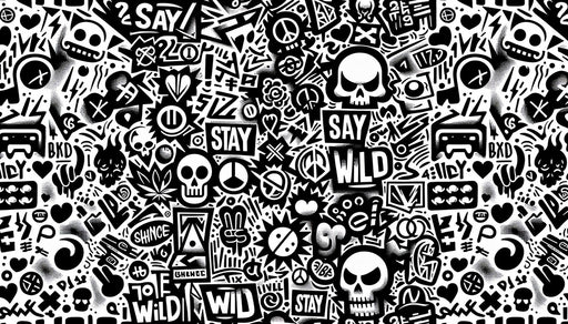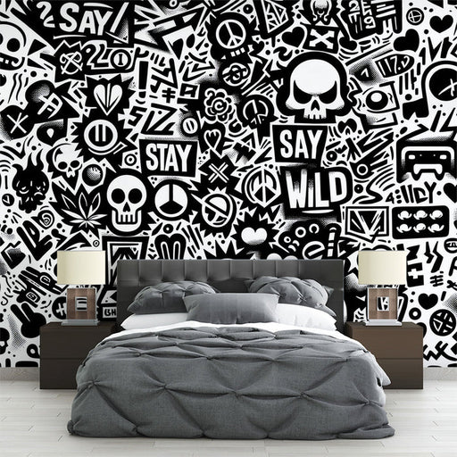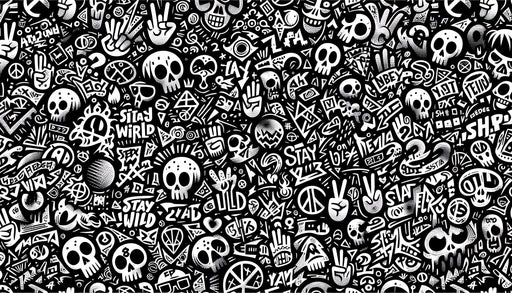 Afficher tous les détailsThis wallpaper boldly combines street hip-hop culture with dark graffiti art. In the full black-and-white layout, elements such as skulls, gesture ...