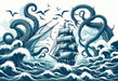 This wallpaper combines Cthulhu's fantasy style with the elements of retro sailing adventure. In the picture, the tentacles of the giant octopus are coiled like night vines, with textures full of mysterious and eerie details, as if they contain unknown powers of the deep sea; The vintage sailboat sails through the surging blue waves, with the lines of the sail and hull exuding an adventurous feel; Seagulls soar in the sky, adding a touch of liveliness to the tense atmosphere of confrontation.