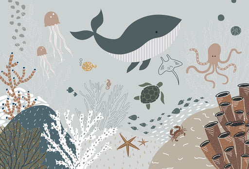 Afficher tous les détailsThis wallpaper brings' Ocean Fairy Tale Secret Realm 'back home 🐳🌊 Whale and small fish elements, pasted in the children's room, instantly transfo...