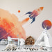Space Rocket Wallpaper Mural — Sci-Fi Kids Room Decor | Cosmic Bedroom & Living Room Accent Wall